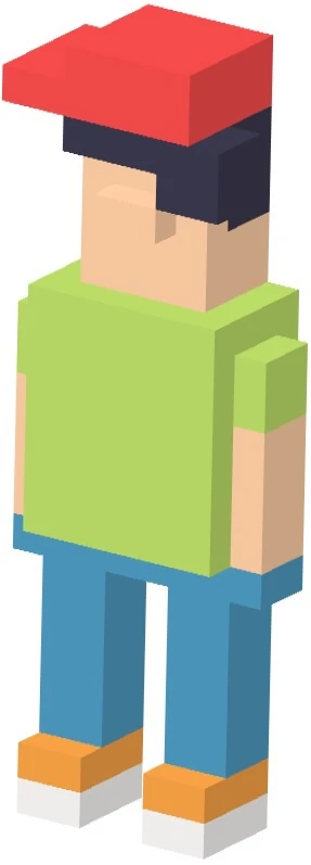 As of the Halloween Update, Ace is a humanoid character with black hair, a green shirt, and a red cap.